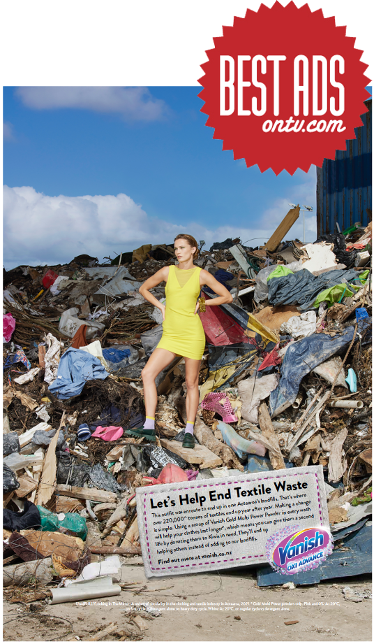 The Vanish Landfill shoot ingeniously juxtaposed fashionable garments with shots taken in a landfill, effectively highlighting the pressing issue of textile waste in New Zealand. This bold campaign not only garnered attention but also earned Vanish a commendation for Best Ads on TV in 2023. By creatively shedding light on the environmental impact of textile waste, Vanish continues to lead the conversation on sustainability and responsible consumerism.